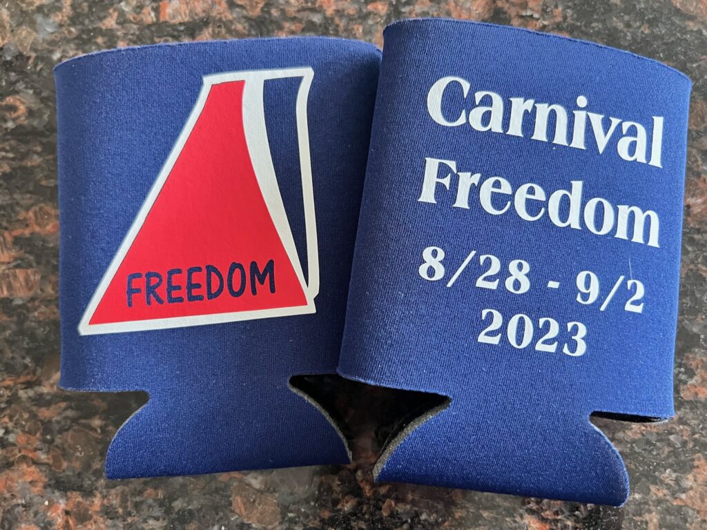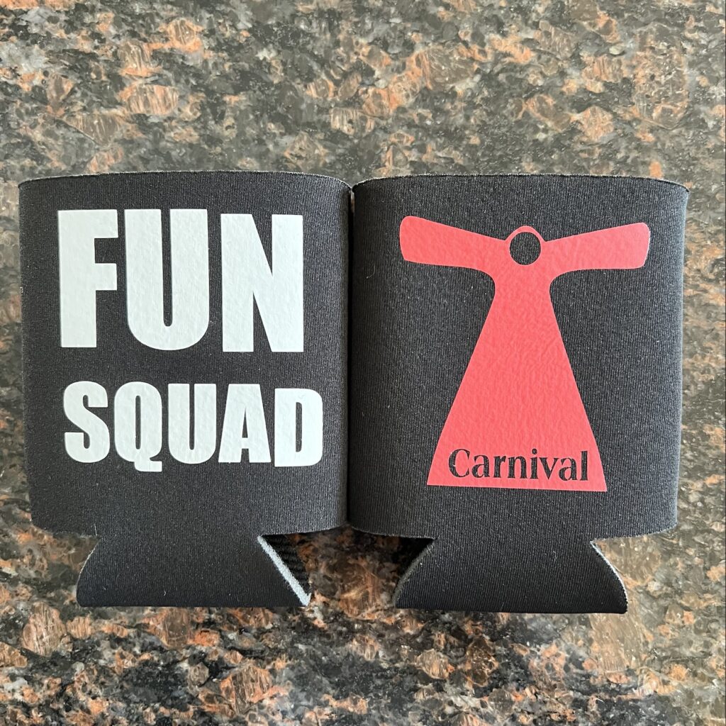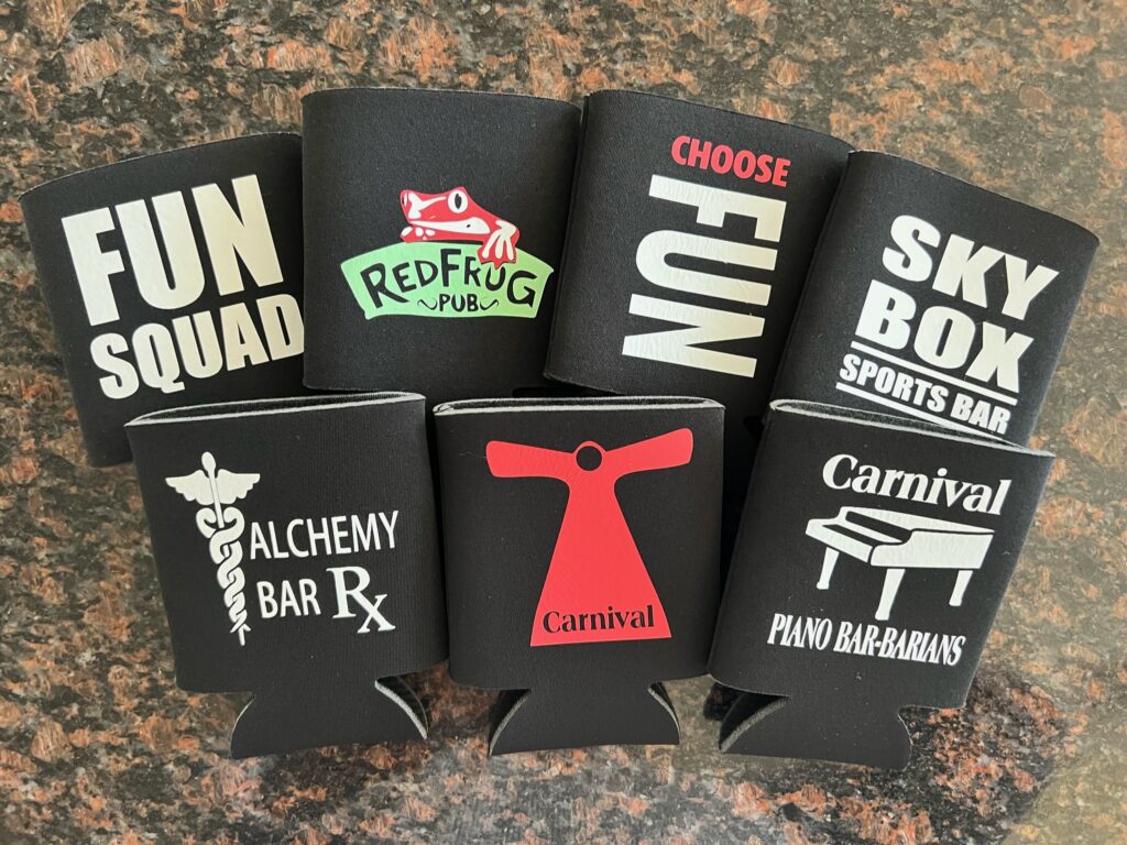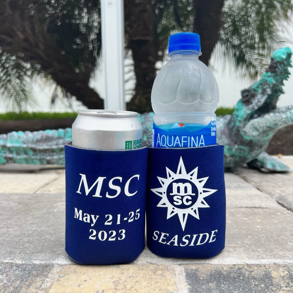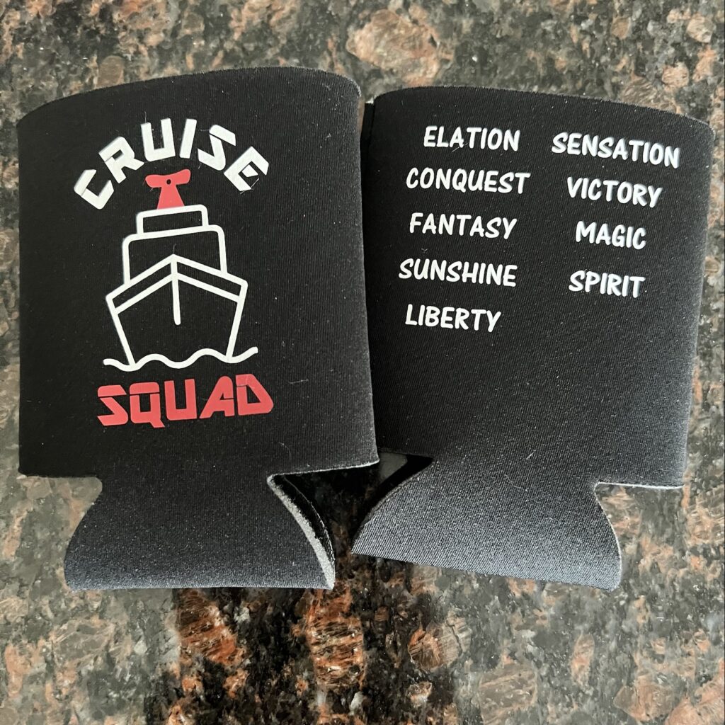 We create can and bottle coozies for all occasions. Below is a sample of some we have created for cruising. These can be customized for any cruise line, ship, dates or special occasions.