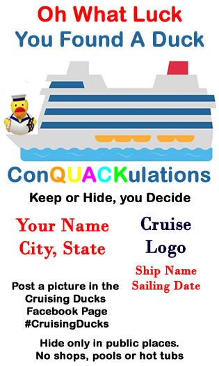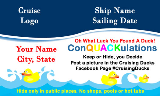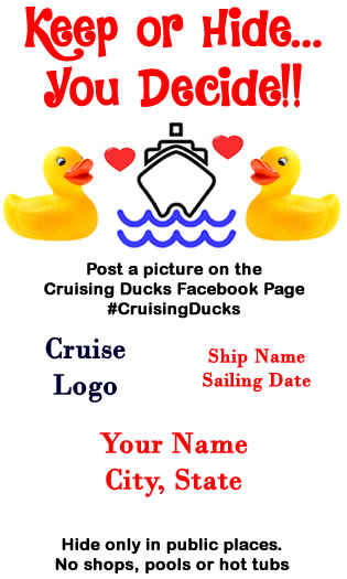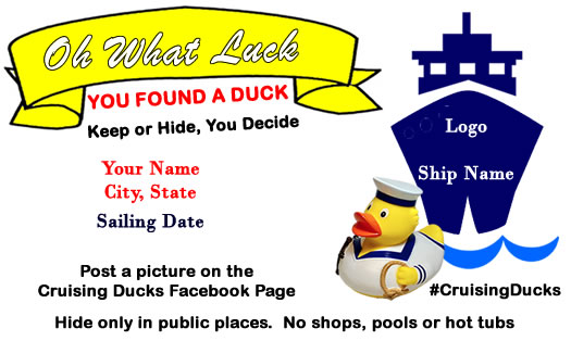 Hiding ducks on cruises has become very popular. For explanation see Cruising Ducks Original Page on FaceBook. This is a digital file that will be emailed to you.