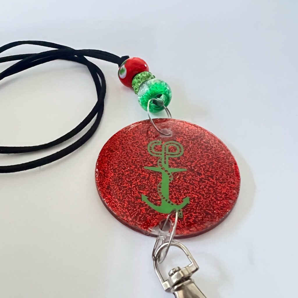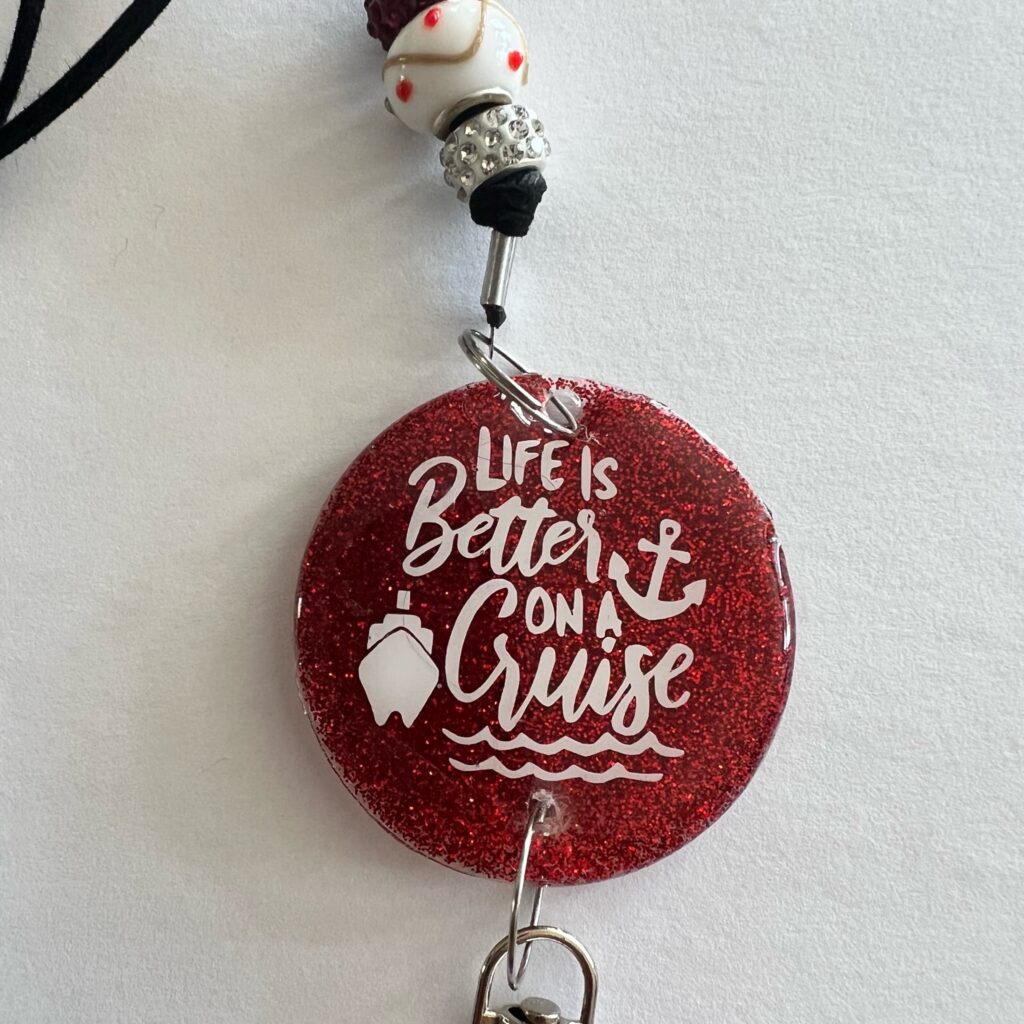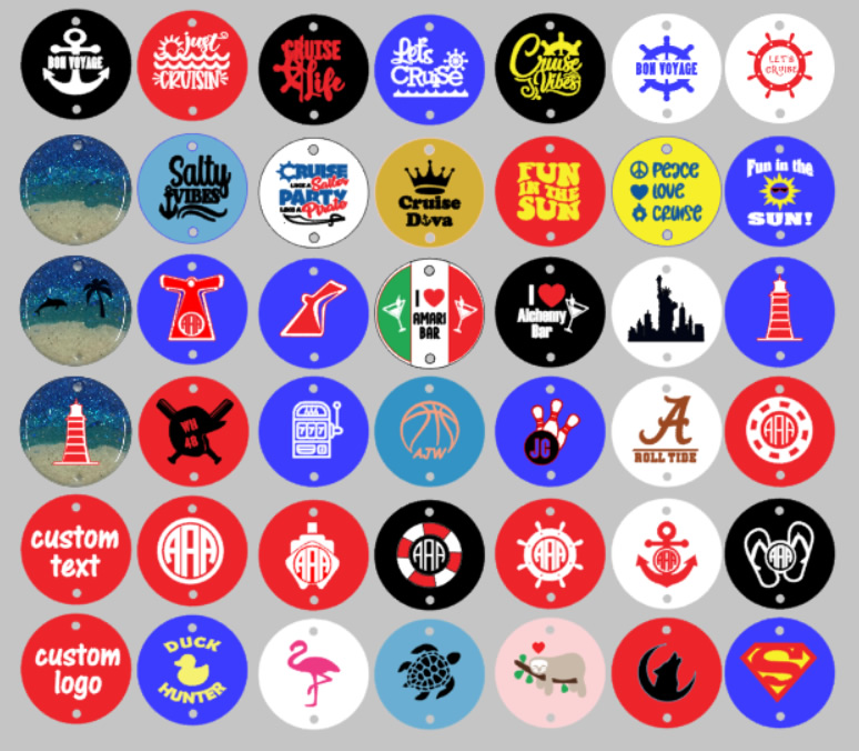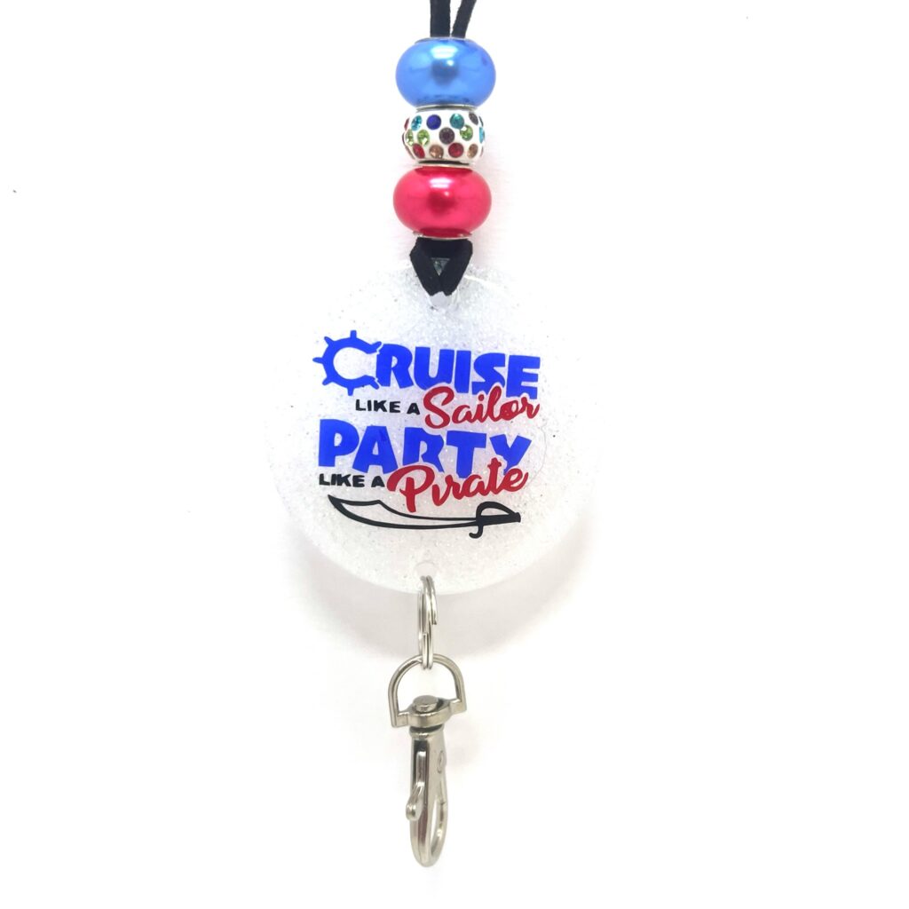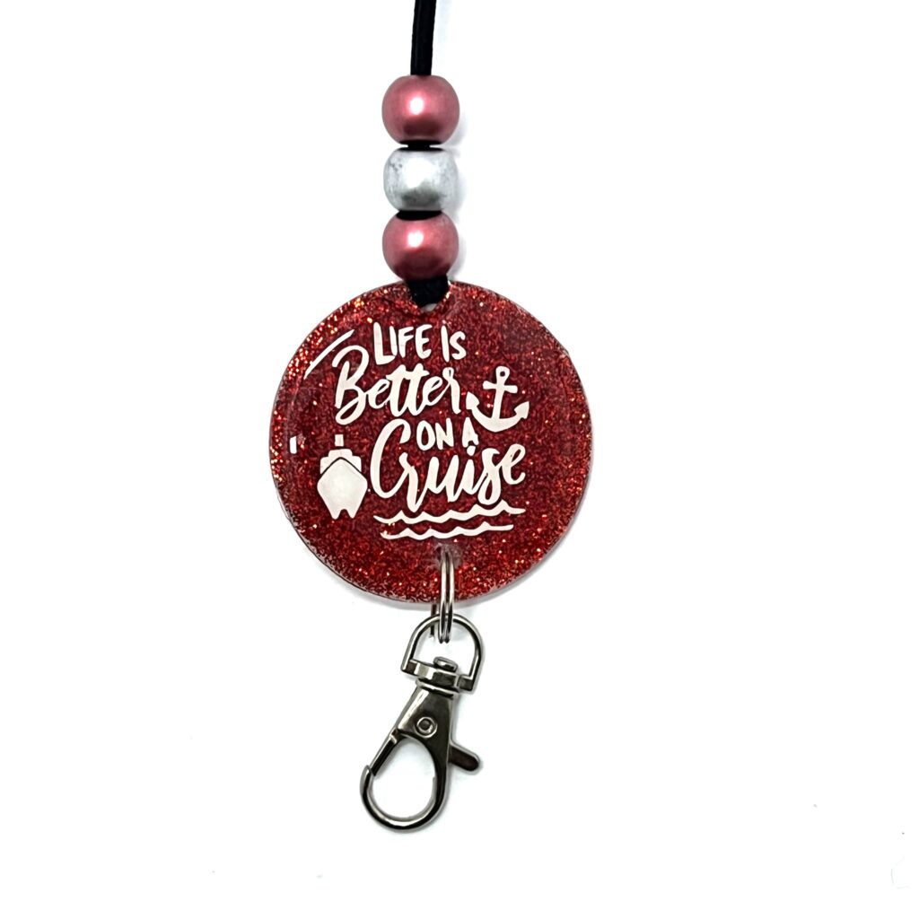 Love to cruise but hate carrying your room card? Our customized cruise lanyards are perfect for you! They measure between 17-20″ in length. The acrylic disc is 2″ and is customized with the color and design of your choice. Each comes with 3 coordinating beads, a breakaway connector and a swivel lobster clasp making it easy to remove your card. Our lanyards are custom made with your choice of disc color, design and beads. The turnaround time for these is approximately one week. However we have several lanyards that are ready to ship if you need one sooner, see below for currently available lanyards.