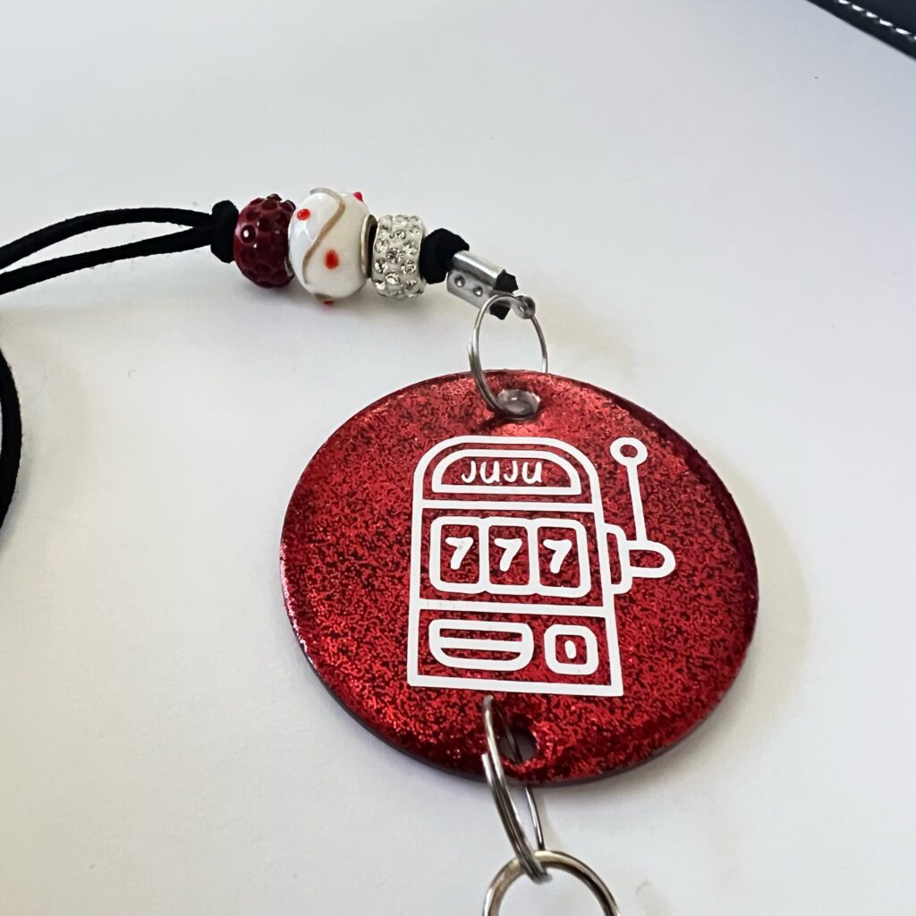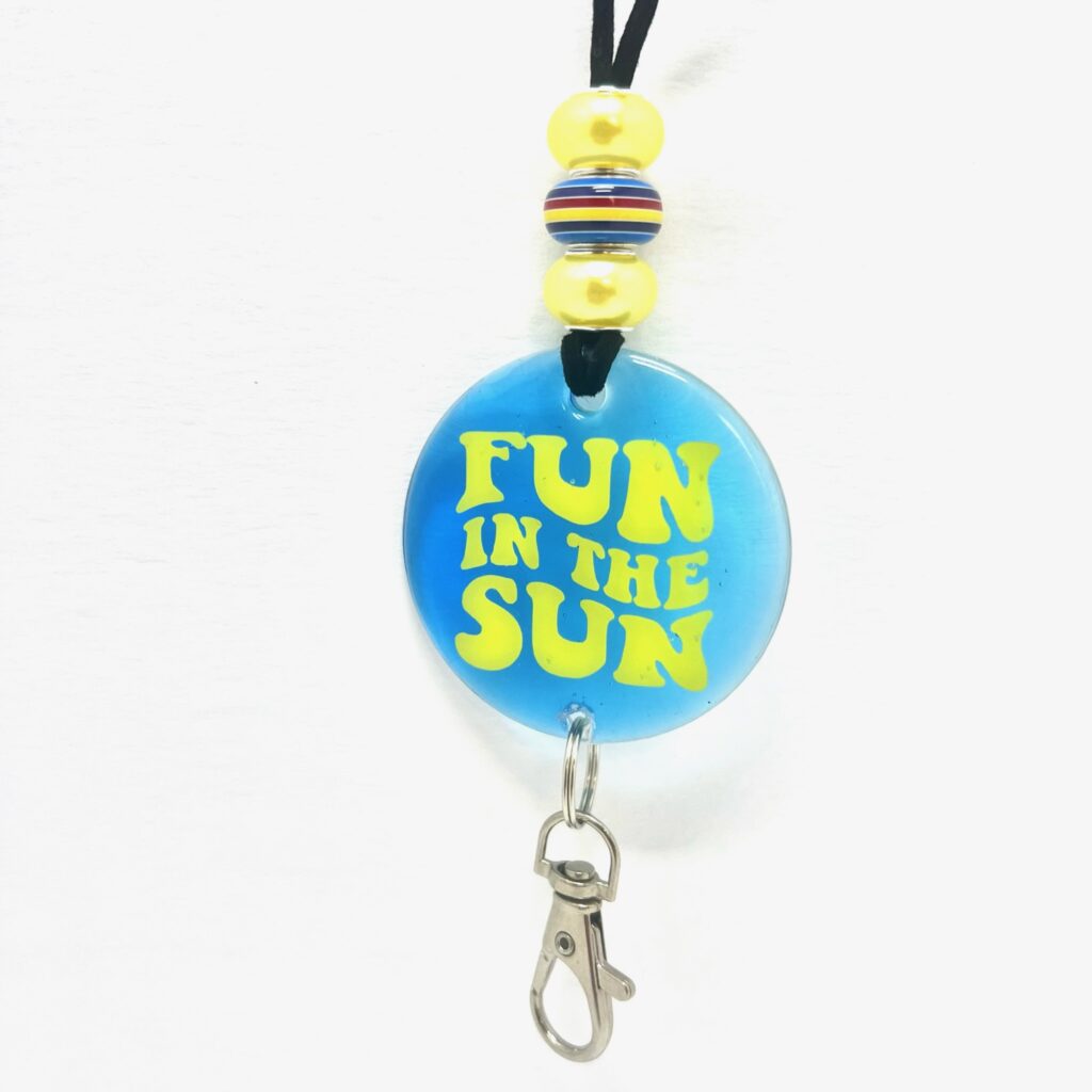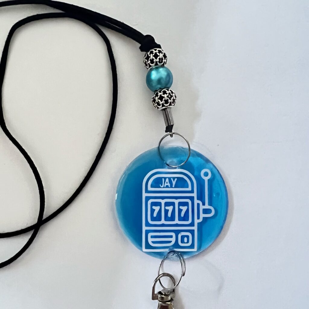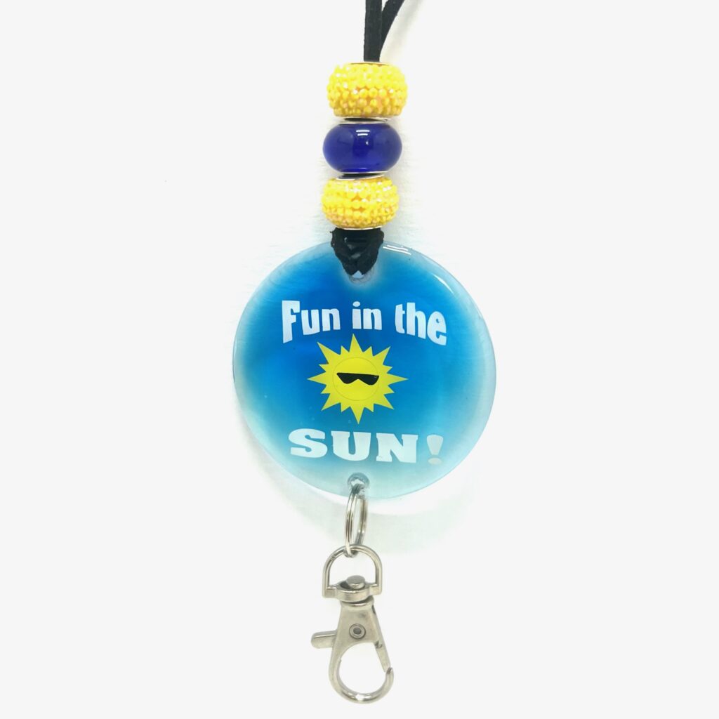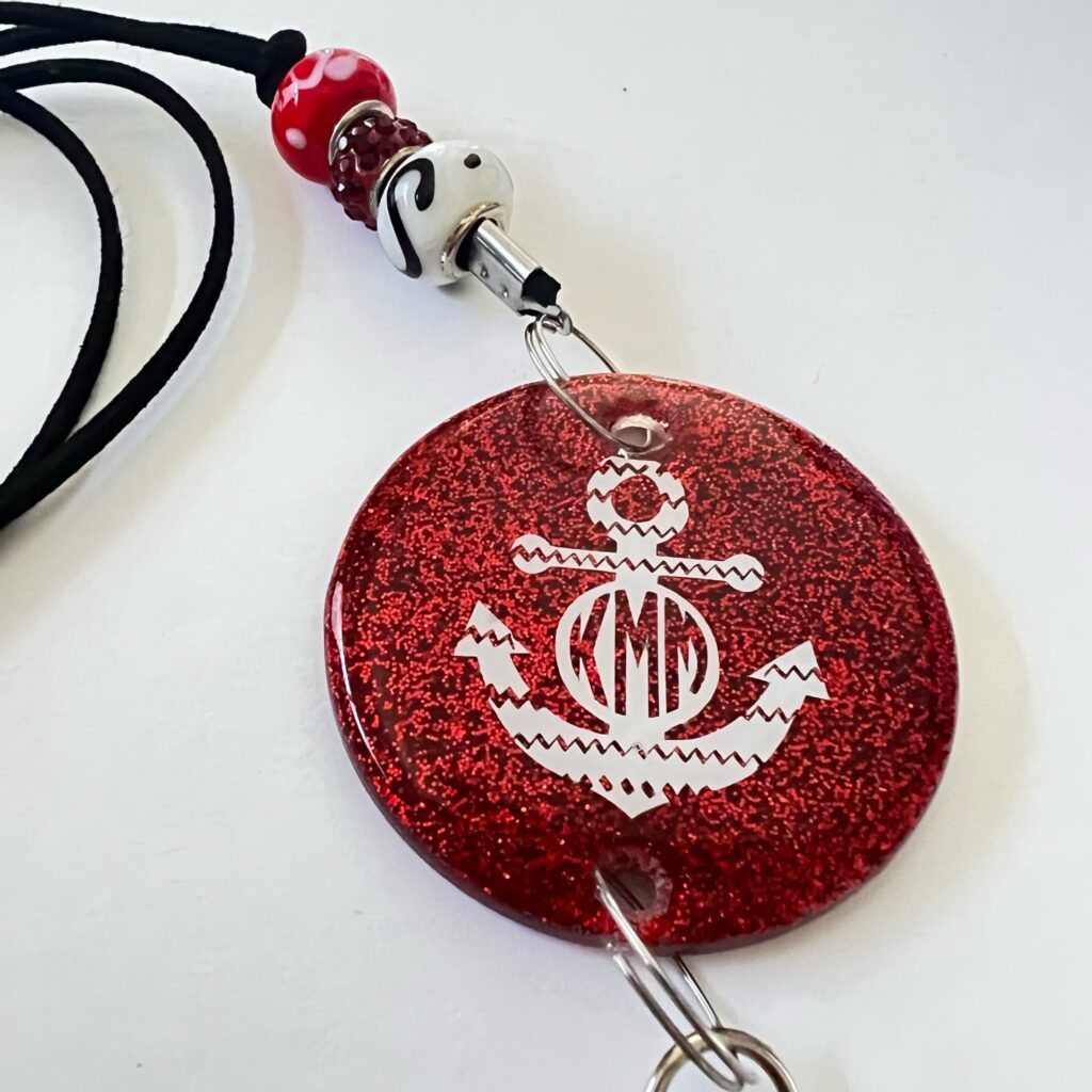 Love to cruise but hate carrying your room card? Our customized cruise lanyards are perfect for you! They measure between 17-20″ in length. The acrylic disc is 2″ and is customized with the color and design of your choice. Each comes with 3 coordinating beads, a breakaway connector and a swivel lobster clasp making it easy to remove your card. Our lanyards are custom made with your choice of disc color, design and beads. The turnaround time for these is approximately one week. However we have several lanyards that are ready to ship if you need one sooner, see below for currently available lanyards.